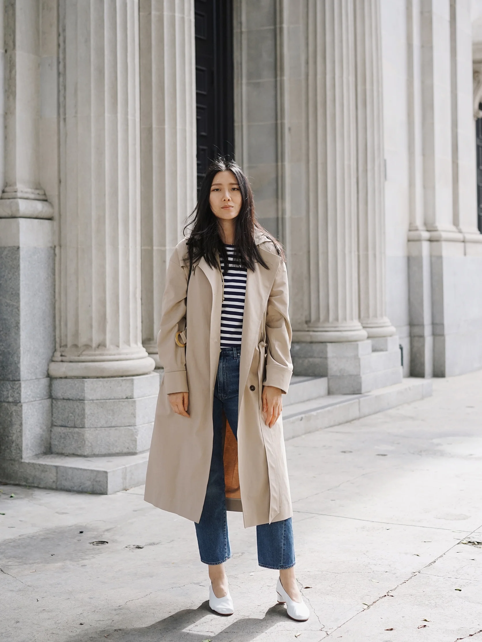 NANUSHKA Trench / KOZHA NUMBERS Bag (More here) /COMME DES GARÇONS PLAY Top / TOTEME Denim /  MARTINIANO Shoes